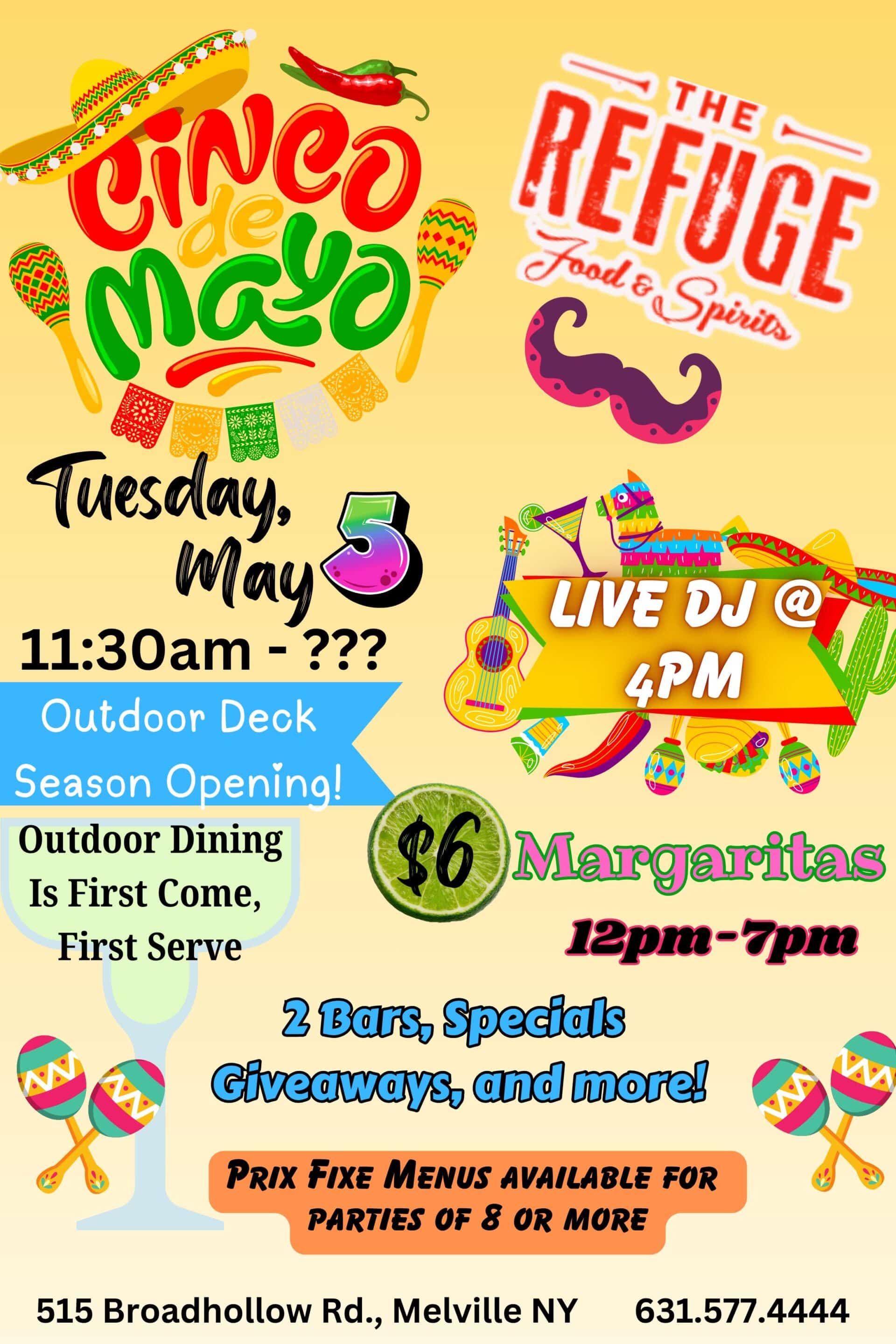 What’s happening this week Current Month Upcoming Events Current MonthmarchNo Eventsapril 05apr10:00 am2:00 pmEaster Sunday Brunch Buffet at The Refuge Time(Sunday) 10:00 am - 2:00 pm CalendarGoogleCal may 05may(may 5)11:30 am06(may 6)12:00 pmCinco De Mayo at The Refuge! Time5 (Tuesday) 11:30 am - 6 (Wednesday) 12:00 pm CalendarGoogleCal Past Events